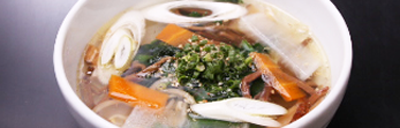 ユッケジャンスープに乾麺で食す温かい麺料理